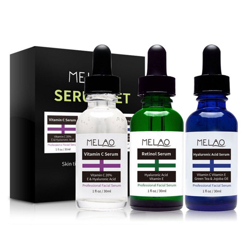 Melao 3pcs Set Vitamin C Serum Hyaluronic Acid Serum Retinol Serum